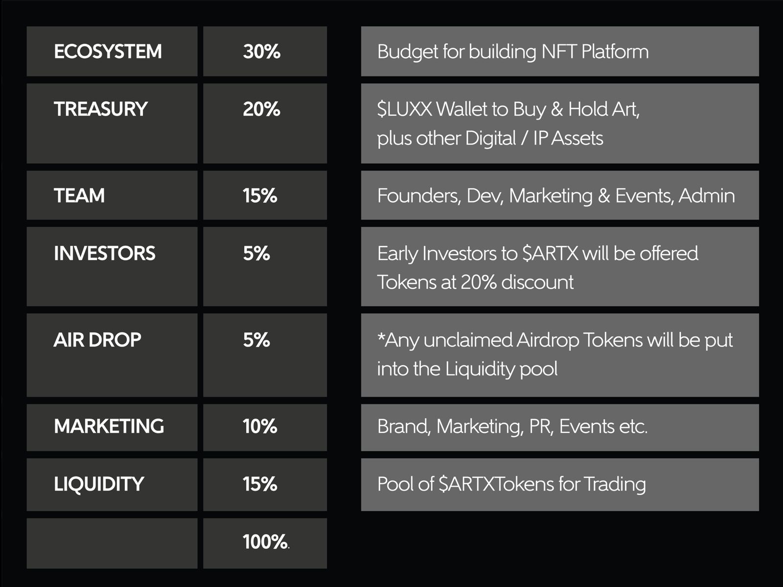 # $ARTX Tokenomics Table